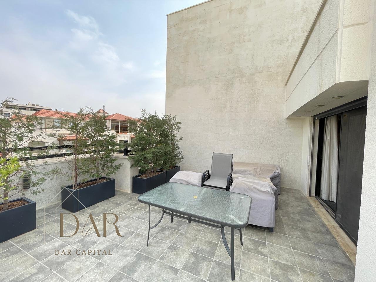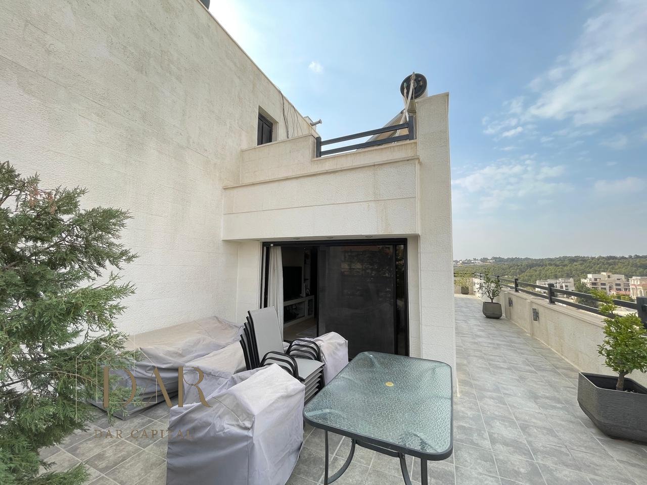 This full-floor rooftop apartment in Dabouq features 150 sqm of internal space along with a generous 173 sqm private terrace area, offering a unique balance between indoor comfort and open-air living. Situated in one of Dabouq’s most desirable residential neighbourhoods, the property benefits from a quiet atmosphere, organized surroundings, and convenient access to essential services. The apartment is unfurnished, allowing residents the flexibility to design and furnish the space according to their personal style. One of its most remarkable features is its exceptionally high vantage point, delivering very elevated, stunning panoramic views that are rarely found in the area. The terrace wraps around the entire floor, providing peripheral, all-around exposure that enhances both the openness and the panoramic experience. With its prime location, expansive terrace, and exceptional outlook, this rooftop apartment is an excellent choice for those seeking privacy, openness, and a beautiful setting.